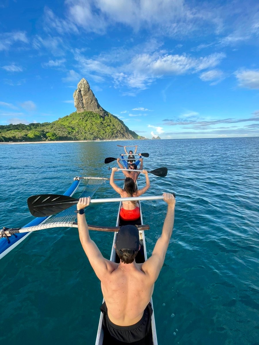 Explore a beleza de Fernando de Noronha ao amanhecer em uma canoa havaiana, navegando com golfinhos e renovando-se nas águas cristalinas!