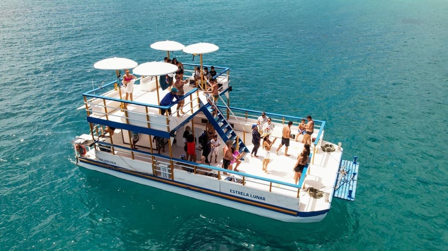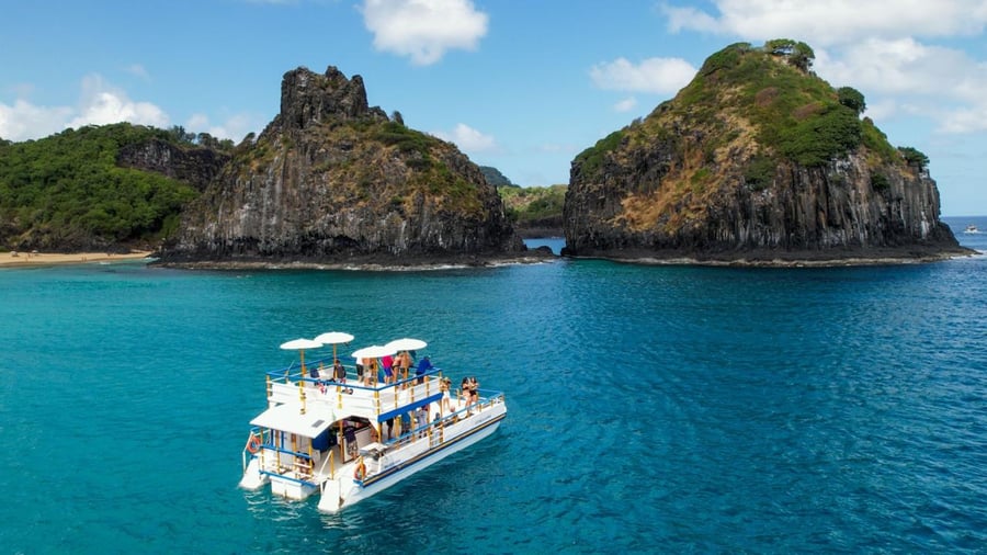 Explore 60% de Fernando de Noronha em um dia inesquecível, descobrindo praias paradisíacas, história fascinante e vida marinha deslumbrante com o Ilha Tour!